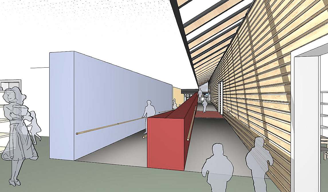 Die minimalen Höhenunterschiede werden auf flachgeneigten und rollstuhlgerechten Rampen überwunden. Die Rampenanlage gewährleistet auch die barrierefreie Erschließung und bietet darüber hinaus vielfältige Spielmöglichkeiten: