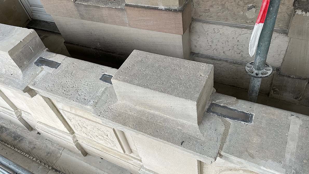 Bei der Sanierung wurden – entsprechend der heute üblichen Vorgehensweise im Denkmalschutz – die Kaschierung der Splitterlöcher entfernt, so dass diese als zeitgeschichtliche Zeugnisse erkennbar sind. Die witterungsbedingten strukturellen Schäden an den Sandsteinelementen wurden mit diversen Techniken denkmalgerecht restauriert. So wurden insgesamt fast 270 sogenannte Vierungen eingebaut, also kleine quaderförmige Werkstücke, die an beschädigten Stellen in die gesunde Steinumgebung eingesetzt wurden. Ca. 70 Mauerwerksquader wurden komplett oder teilweise erneuert. Außerdem wurden diverse schadhafte Architekturglieder wie Fensterbänke oder Brüstungselemente teilweise oder komplett ausgetauscht. Die Arbeiten wurden 2025 erfolgreich abgeschlossen.