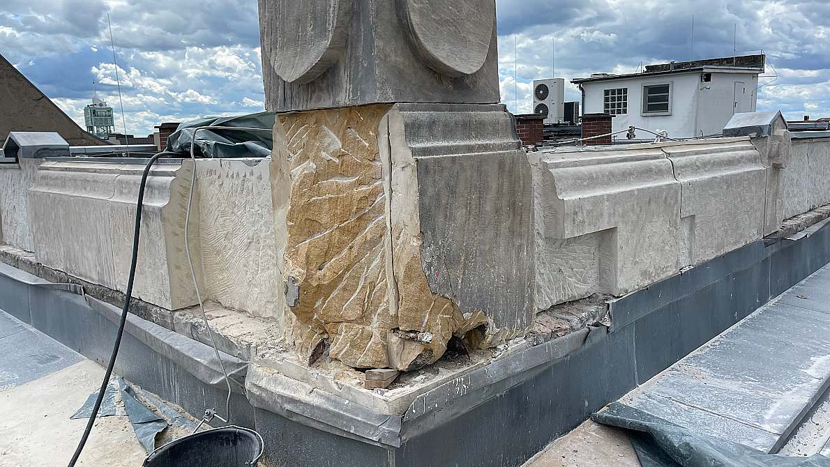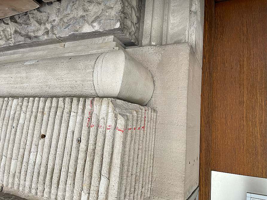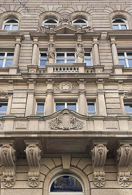 Das Domizil des Städtischen Leihamts in Mannheim, der einzigen öffentlich-rechtlichen Pfandanstalt Deutschlands, ist ein ehemaliges Bankgebäude von 1901, errichtet nach Plänen der Architekten Jelmoli und Blatt. Die beeindruckende Fassade wurde aus hellem Vogesen-Sandstein gebaut. In den mehr als 120 Jahren ihrer Existenz hat die Fassade einiges mitgemacht. So gab es im 2. Weltkrieg zahlreiche Schäden durch Bombensplitter, welche wenig fachgerecht und auch nicht denkmalgerecht mit Reparaturmörtel notdürftig ausgeflickt wurden. Und in den Jahrzehnten danach setzte der Fassade die wachsende Luftverschmutzung durch Autoabgase und andere Luftschadstoffe weiter zu. Die letzte Sanierung fand ca. 1990 statt, als das Leihamt in das Gebäude zog. Seitdem sind wieder zahlreiche Schäden entstanden, außerdem begannen die Reparaturstellen der Nachkriegszeit immer mehr zu bröckeln.