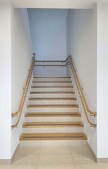 Der Neubau ist in allen Bereichen barrierefrei gestaltet (Aufzug, schwellenlose Terrassentüren, Bewegungsflächen, …).