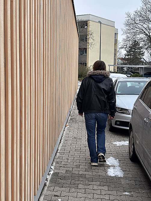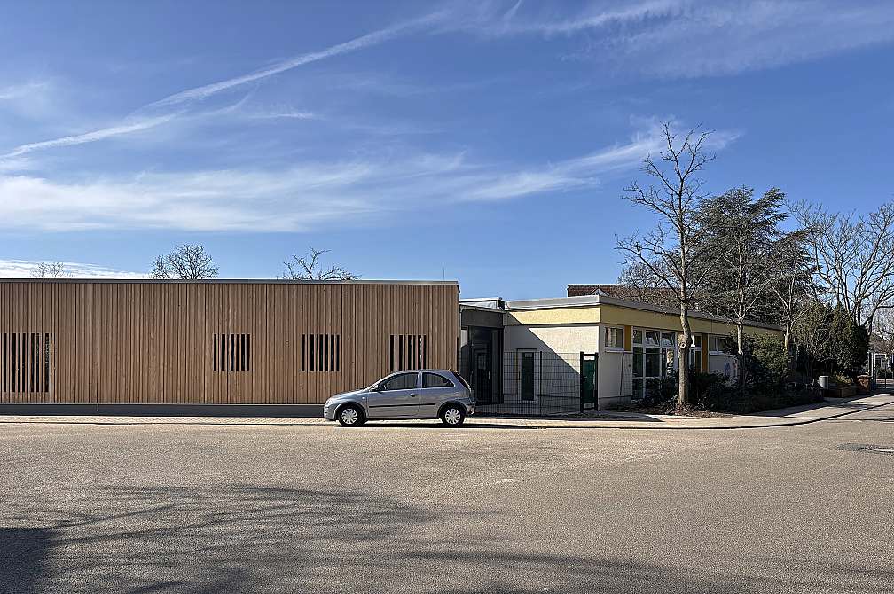 Aufgrund des begrenzten Platzangebots auf dem bestehenden Außengelände wurde der Neubau entlang der Grundstücksgrenze zur Straße positioniert – ein sensibler Ort, der zugleich Herausforderung und gestalterische Chance bot. Eine vertikale Boden-Deckel-Schalung aus Holz lässt das konstruktive Material des Holzbaus nach außen sichtbar werden und bildet eine schützende Hülle. Im Bereich der straßenseitigen Fenster wird die Fassade durchlässig: Schmale Öffnungen ermöglichen gezielten Lichteinfall und Ausblicke für die Kinder, schützen aber gleichzeitig vor Einblicken von außen. Zur Garten- und Hofseite hin öffnet sich das Gebäude mit großzügigen Verglasungen und schafft helle, freundliche Innenräume mit direktem Bezug ins Grüne. Dachüberstände, außenliegende Verschattungselemente und die Möglichkeit zur Nachtauskühlung sorgen dabei für wirksamen sommerlichen Wärmeschutz.